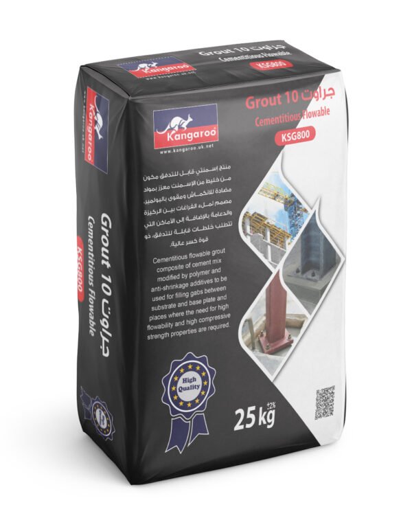 A flowable cementitious product made from polymer-reinforced cement, anti-shrinkage additives and selected aggregates, designed to fill voids between the substrate and the support as well as areas requiring flowable mixes and high compressive strength.